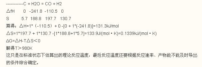 如何计算一个化学方程开始反应的温度,从ΔG=ΔH-TΔS计算?下面的第一张图中就是从ΔG=ΔH-TΔS计算,ΔH、ΔS分别代的是标况下的数值,可是在文献中看到图2的开始温度计算,用图1的方法计算不对,求解呀,在线等。各种物质的数值在《纯物质热化学数据手册》中查得到,网速慢,我就不传了 [ Last edited by ding11038 on 2013-3-10 at 14:50 ] |