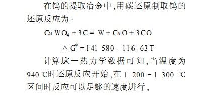 用HSC大概算了一下,800-900℃可以开始反应,与图2的计算不一致。 另外这种计算别人肯定做过,你参考一下这两篇文章,好像算的也不一样。 http://file.lw23.com/8/8a/8a9/8a ... e8-7e41e850e0b5.pdf http://static.cnfeol.com/chart/manual/07/0516/ac954cc0-5d6d.pdf CaWO4+3C=W+CaO+3CO(g) T deltaH deltaS deltaG K Log(K) K kJ J/K kJ 273.150 671.245 508.831 532.258 1.612E-102 -101.793 373.150 683.989 548.608 479.276 8.017E-068 -67.096 473.150 696.334 577.942 422.881 2.047E-047 -46.689 573.150 708.254 600.807 363.901 6.804E-034 -33.167 673.150 719.860 619.478 302.858 3.141E-024 -23.503 773.150 731.286 635.305 240.100 5.989E-017 -16.223 873.150 742.645 649.123 175.864 3.009E-011 -10.522 973.150 753.992 661.426 110.325 1.196E-006 -5.922 1073.150 765.349 672.535 43.618 7.529E-003 -2.123 1173.150 776.741 682.684 -24.150 1.189E+001 1.075 1273.150 788.189 692.049 -92.892 6.479E+003 3.811 1373.150 799.713 700.762 -162.538 1.526E+006 6.183 1473.150 811.319 708.920 -233.026 1.834E+008 8.263 |