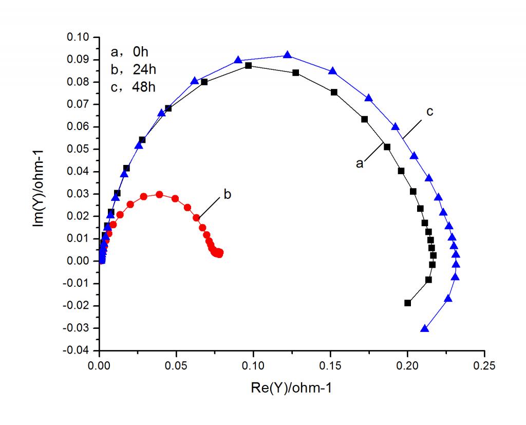 各位大神,我做的316L在酸中的阻抗谱曲线,怎么随浸泡时间的不同跟别人不一样呢,0h就出现感抗,是点蚀的诱导期,24h是感抗消失,发生点蚀,可是为什么48h时,还是会出现感抗呢,这个怎么解释啊?