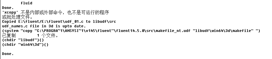 fluent运行UDF时的出现'xcopy' 不是内部或外部命令·····