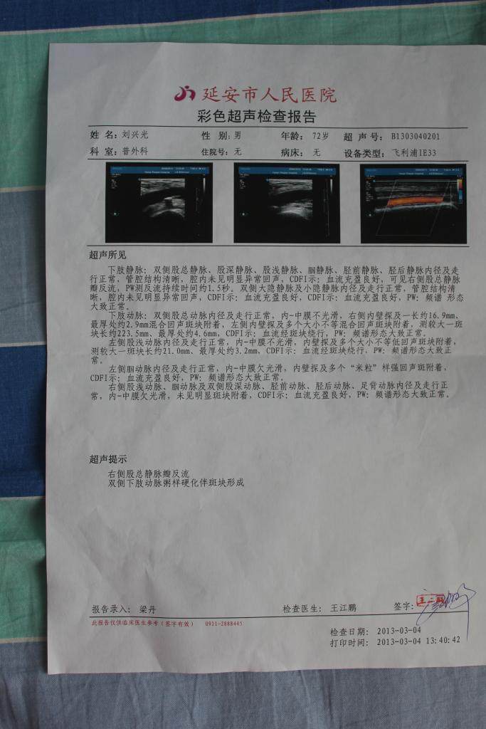 我爷爷腿部的彩超报告!请虫友们多帮助! 这报告到底讲了个神马问题啊?