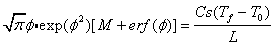 在matlab中新建一个blank M-file,命名为fun122.m 在其中输入: function fun122 M=2; Cs=2; Tf=2; T0=2; L=2; x0=2; [x,fval,exitflag]=fsolve(@(fi) sqrt(pi)*exp(fi^2)*(M+erf(fi))-(Cs*(Tf-T0)/L),x0) end 然后保存。 使用时在matlab命令窗口中输入fun122,回车即可。 M、Cs、Tf、T0、L等参数在fun122.m中修改。(x0为迭代初值) 得到的结果中如果exitflag=1并且fval趋近于0,那么结果x就是你所要的结果。 仅供参考! |