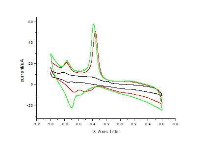 最近做的Pd电催化氧化乙醇,但在性能方面的解释不是很清楚,只是大概知道起始电位,电流密度比较来比较性能,但是自己看图还是不是很明白,请高手帮忙分析下这两幅图。在NaOH/乙醇,NaOH中 未标题-2.jpg 未标题-3.jpg |