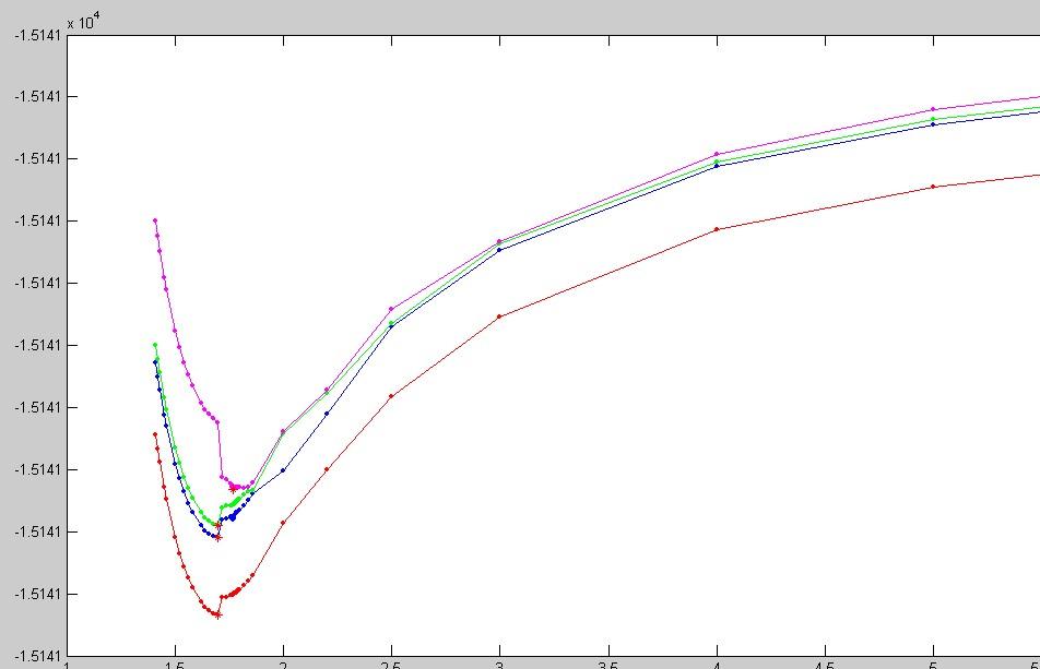各位大神,我是新虫,这几个月来用molcas算HfO的势能曲线的时候,数据上总是出现一些突出点,我在输入文件里加入LS修正还是不能改变,加入初始轨道猜测也没能解决问题,我附上截图,想看看各位大神有什么好的意见可以帮助我。我做的是4个根的情况,每个跟都是态平均。