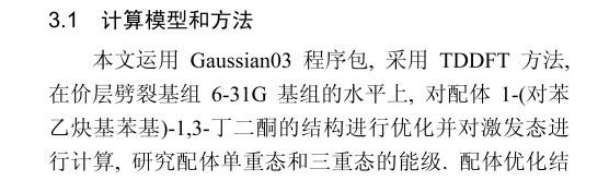 做的是稀土配合物,想算一下配体(有机小分子)的最低激发能,从没搞过计算,临时补数据,求详细步骤。。。谢谢啊。 PS:图片是一篇文章中的处理过程,想模仿他那样算,最终就是想得到配体的最低激发能(图中的红框) 1.jpg 2.jpg 3.jpg 3.jpg |