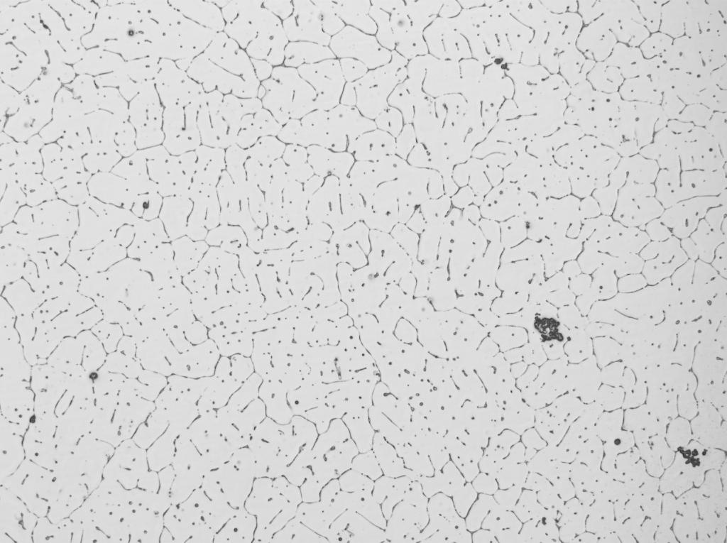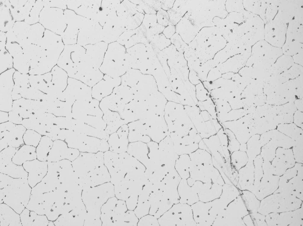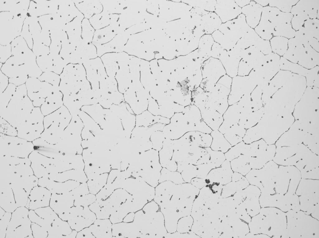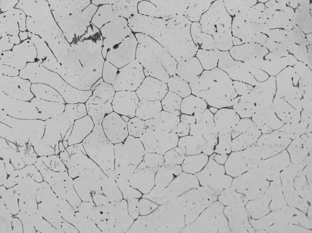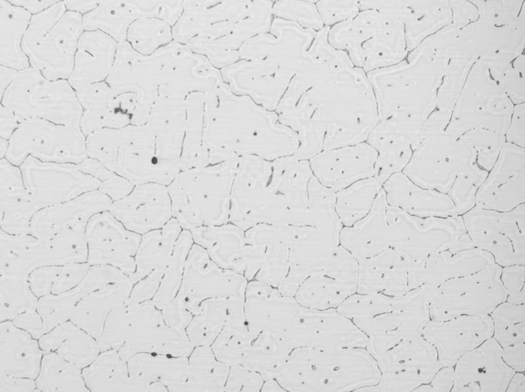 各位大侠,这是我最近做的纯铝(铝钛硼细化试验后)的图片,是按国标高氯酸酒精1:9的点解抛光液,40v,4A,15S电解后的图像,电解后样品表面基本光亮,但是有很小的亮点或黑点,显微镜下是黑色的点点,是不是点蚀?该怎么避免呢?还有发现腹膜(国标:硫磷混酸)后和电解后的没什么区别,另外,电解后的样品显微镜下很多都是长条状的晶体,这是电解太轻的原因吗?求各位赐教!前五张是覆膜后的,其它的只是电解抛光。