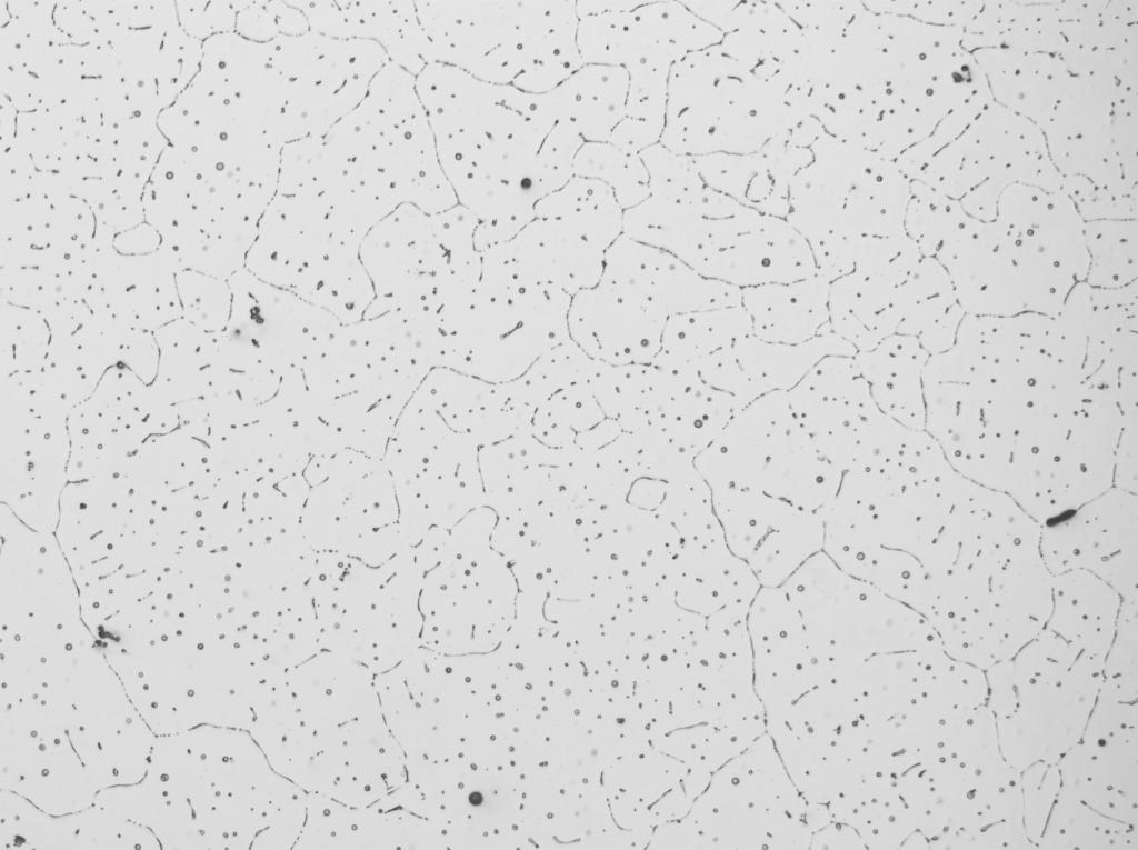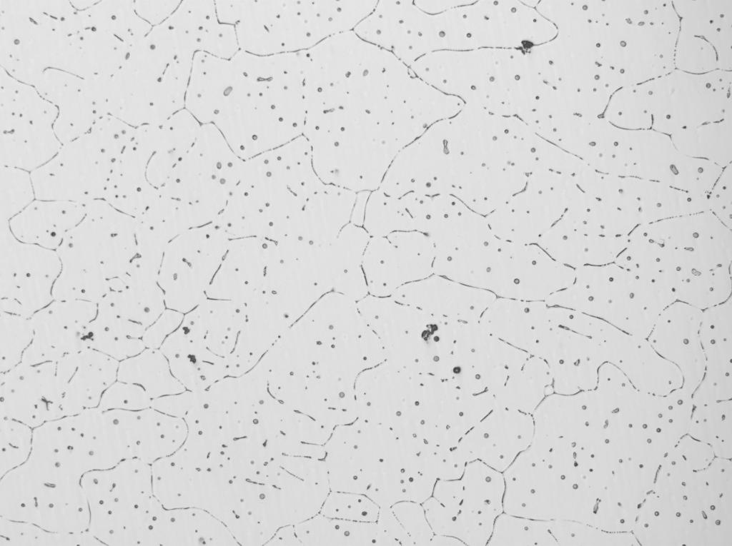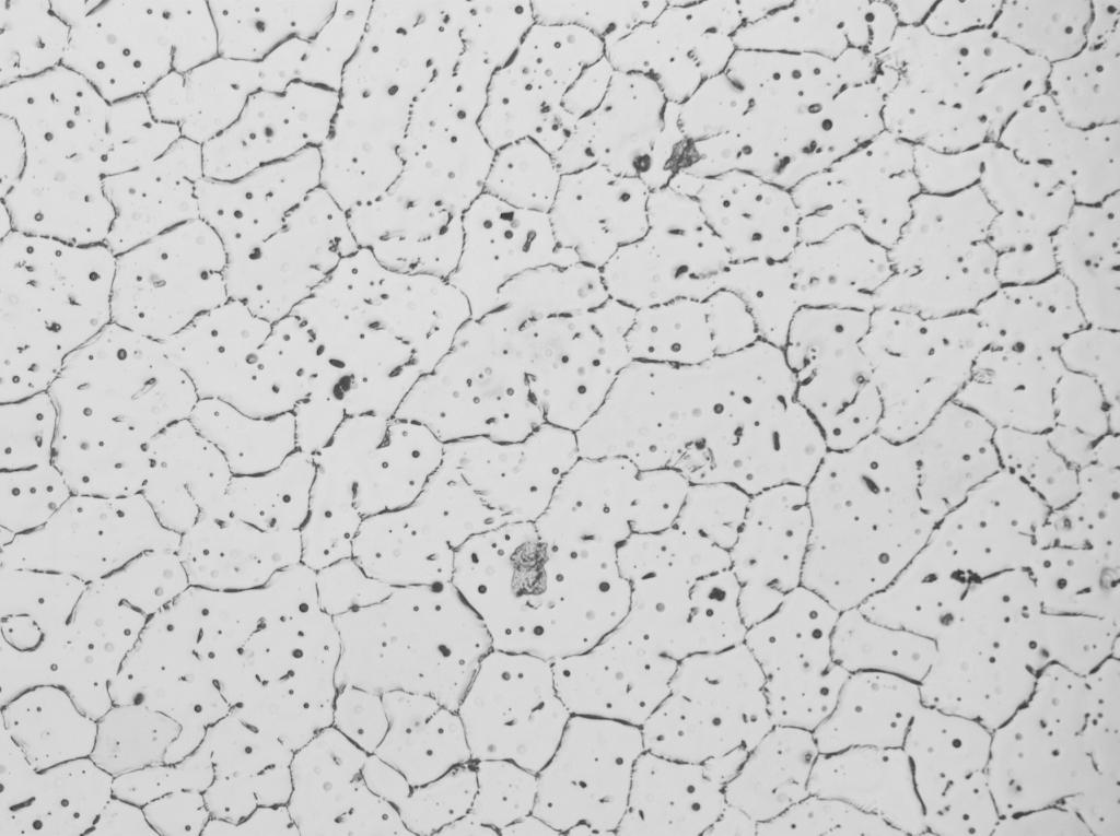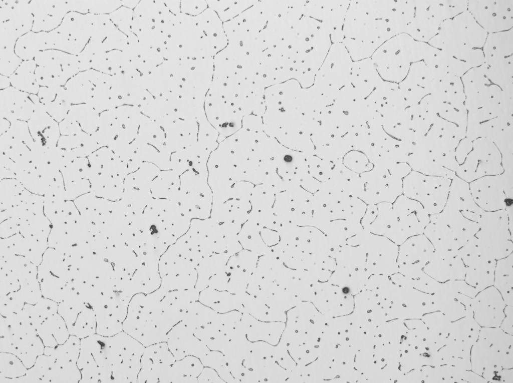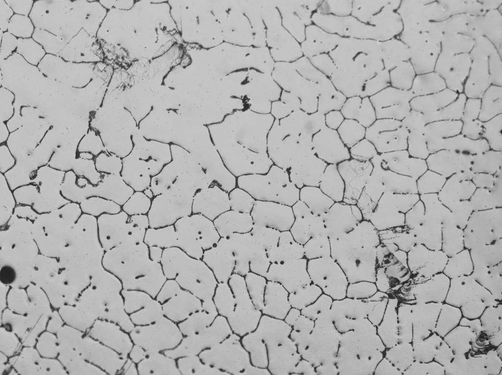 各位大侠,这是我最近做的纯铝(铝钛硼细化试验后)的图片,是按国标高氯酸酒精1:9的点解抛光液,40v,4A,15S电解后的图像,电解后样品表面基本光亮,但是有很小的亮点或黑点,显微镜下是黑色的点点,是不是点蚀?该怎么避免呢?还有发现腹膜(国标:硫磷混酸)后和电解后的没什么区别,另外,电解后的样品显微镜下很多都是长条状的晶体,这是电解太轻的原因吗?求各位赐教!前五张是覆膜后的,其它的只是电解抛光。