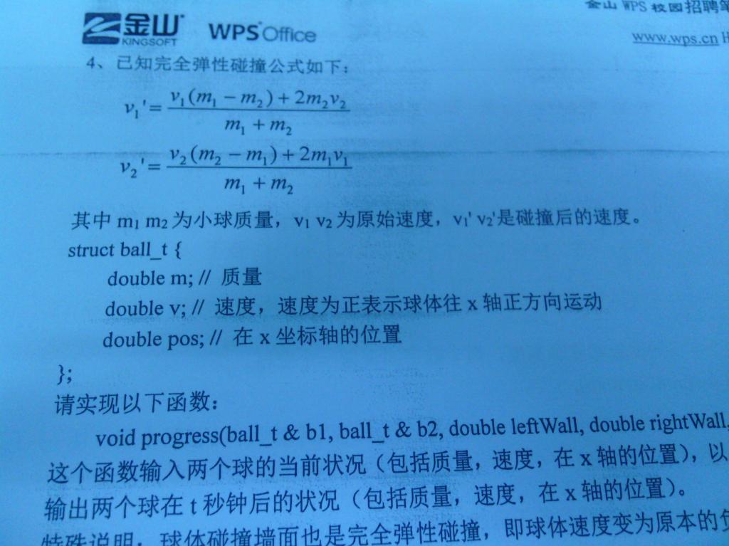 纯弹性(无能量损失),纯质点(无size)碰撞,这不是纯高中物理吗?公式都给了,稍微看下c/c++一个周末就好了.
