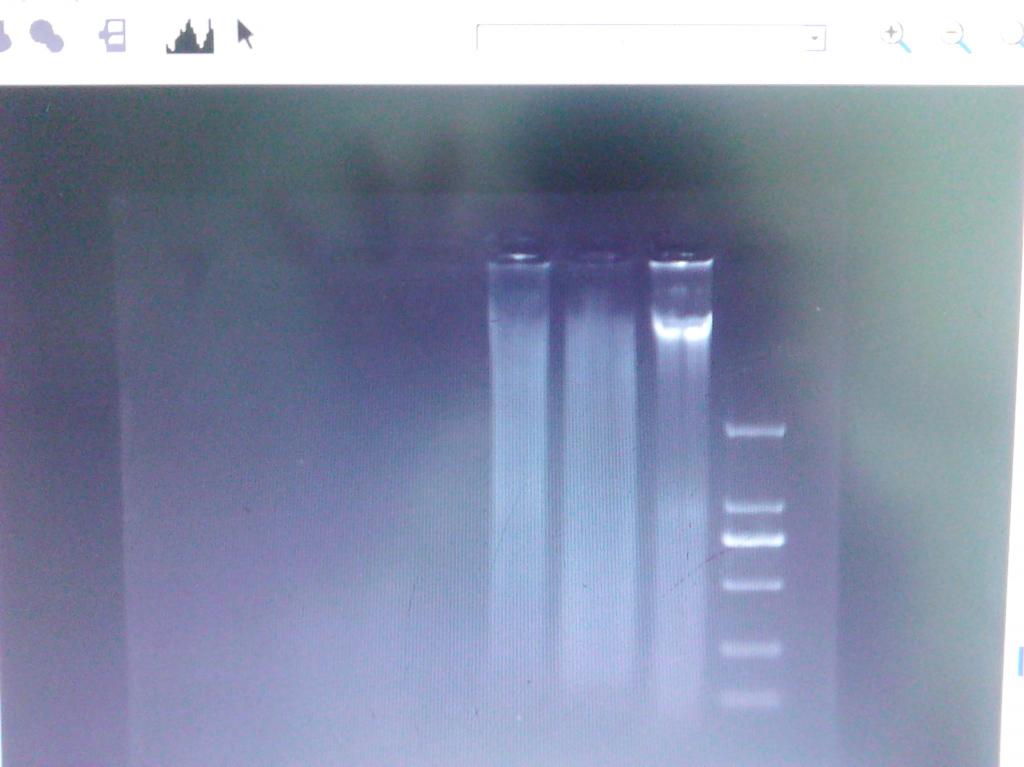 接接头,之后扩增做多态性。感觉片段没切断啊,正常应该是在2000bp以上啊!那你看我的基因组DNA有降解吗?