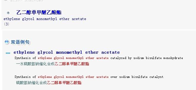 从CNKI上查到了有 乙二醇单甲醚乙酸酯 ethylene glycol monomethyl ether acetate