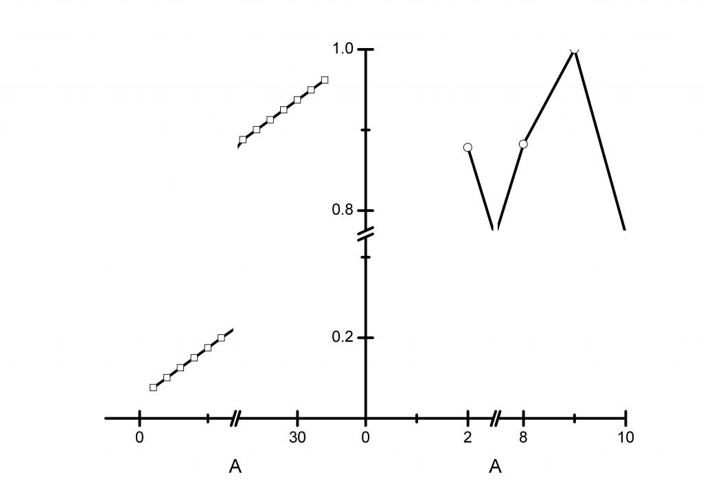 我尝试了使用origin来作,但是origin只支持一个断开(每个坐标轴),用多个图层叠加设置相当的繁琐还得PS后期。