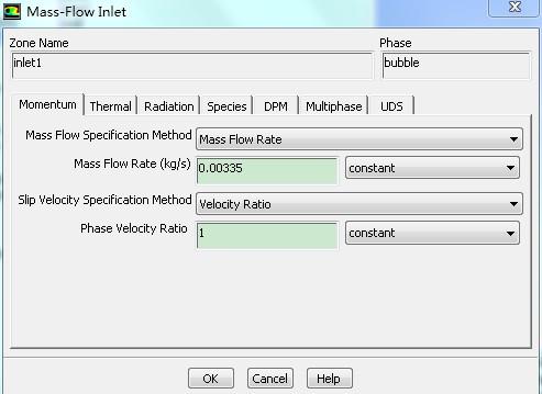 fluent模拟气液欧拉双流体模型,液体为主相,气体为次相,设置质量流量进口边界条件,进口全部为气体,在设置次相的滑移速度方法选择及体积分数值与速度比都是代表什么意思?怎么确定的?如下图所示: mass.jpg mass1.jpg |