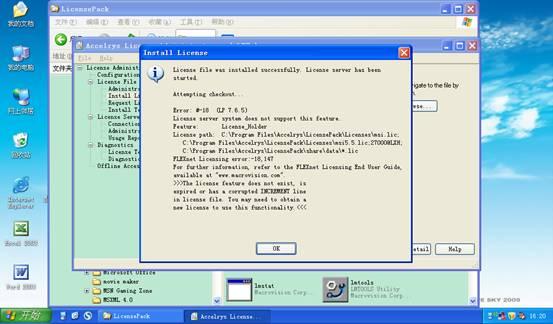 最近在装MS5.5,我的系统是winXP的,装完程序后修改了msi.lic文件中第一行的计算机名为本机后,进行licence文件安装,结果出现下面的错误提示,我百思不得其解,只好来请教大家了,多谢了!