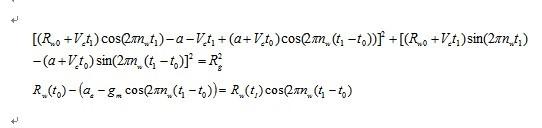 改写了一点,可以算。不过貌似跟你给出的f2的表达式不太一致 clear all;clc; syms t1 t0 Rw0=12e-3; Vc=10e-6/60; Rg=3e-3; a=6e-3; ae=10e-6/60; nw=300*3.14*2/60; f1=((Rw0+Vc*t1)*cos(2*3.14*nw*t1)-a-Vc*t1+(a+Vc*t0)*cos(2*3.14*nw*(t1-t0)))^2+((Rw0+Vc*t1)*sin(2*3.14*nw*t1)-(a+Vc*t0)*sin(2*3.14*nw*(t1-t0)))^2-Rg^2; f2=Rw0+Vc*t0-ae-(Rw0+Vc*t1)*cos(2*3.14*nw*(t1-t0)); [t0,t1]=solve(f1,f2,'t1,t0') |