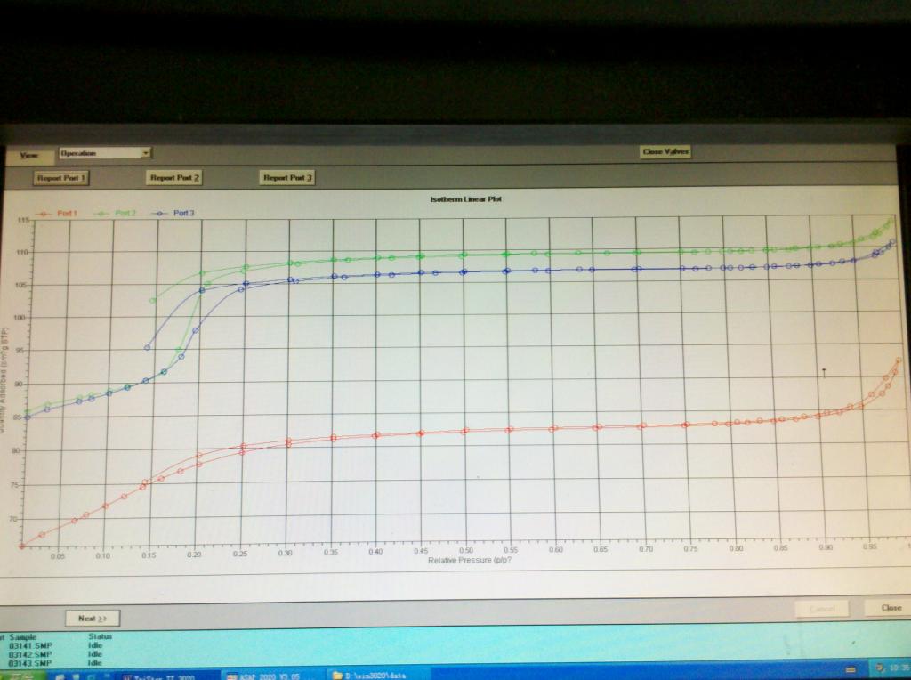 测试问题不大, 先说不闭合的:不闭合说明在那块是存在很多的孔,这个从吸附量变化率来看也可以说明这一点,如果孔是很规则的,那么这一块应该是重合的,但是由于材料自身存在大量的2nm左右的孔,且孔可能不规则,造成当前压力下吸附在孔内的氮脱附不出来或者脱附的不充分。造成吸脱附曲线不闭合。 两个回滞环这个好说:较低压区的回滞环可能是由于存在2nm左右的孔所引起,原因你参考上面不闭合的情况。第二个可能存在部分的大孔,或者材料本身堆积形成的缝隙。 |