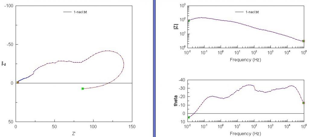 刚接触到EIS,所以很多都不懂,看了曹楚南的腐蚀电化学原理和交流阻抗谱导论,但是还是不会分析复杂的图,请高手指教。我做的是裸露的金属,这是实验所得数据图,请问上面有几个时间常数? 除了溶液电阻、溶液和金属间的电容、金属的电阻(本身电阻和极化电阻)之外,还有什么参数吗? 图中第四象限的图是代表金属受腐蚀产生的感抗吗? 多谢各位高手解惑! e.jpg [ 来自科研家族 材料家族 ] |
