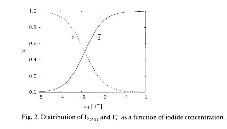 在1*10 (-2上标不知道怎么打上)M 的碘化钾溶液中 离子存在形式是怎么样的? 附件中的图片中的曲线是怎么做出来的? 纵坐标是离子在溶液中的百分比吗? 下面的图中的数据是怎么来的? 多谢了 1.jpg 2.jpg [ Last edited by lrylsy on 2013-3-21 at 10:53 ] |