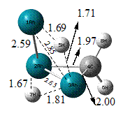 不是那篇文章中的,是我自己算的,Rh3+对CH4的活化,活化了两个C-H键后得到这个结构,始终脱不了H2,我猜它们是不是形成了稳定的H桥键结构,但我又不会分析。