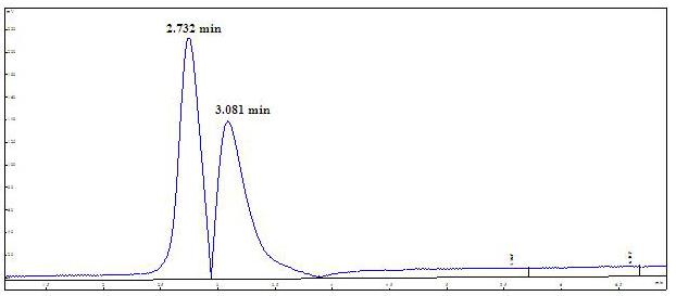 本人现在有一样品,从正丁醇层刮板拿到的,样品拿52%甲醇-水溶解后取少量以30%甲醇-水稀释后进液相,结果以30%甲醇-水体系冲的时候低浓度时仅出来俩峰(见图1及图2,其中图2为图1的局部放大图),于是本人又增加了进样浓度,结果还是出现了保留时间相近的两个峰,只是峰高变大了,看这样子是样品没有在柱子上保留,请问各位高手有什么办法让样品能够在柱子上保留,并且能够分开呢?非常感谢! 图1 图2 图3 [ 来自科研家族 骷髅党 ] |