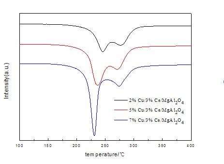 这是Cu/Ce/MgAl2O4的H2-TPR谱图。Cu的含量由上往下依次是2%,5%,7% Ce的含量为3%。这两个还原峰是不是分别为CuO以及CeO2表面氧物种的还原峰啊?为什么随着Cu负载量增大,低温还原峰温偏低呢? 2U7K1)U2I_YVZ{4]]}$[`)N.jpg |