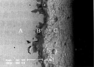 切割钢丝产品缺陷 2012-02-06 来源:邢台钢铁 1.中心毛刺(Central Burst Fracture 简称CB) 中心毛刺的断口一般呈杯状或者锥状。主要是因为钢丝拉拔过程中表面和内部受力不均导致。 导致原因: • 大的变形角度 • 低的压缩率 • 钢丝内部低应力 2. 拉拔过载(Ductile overload Fracture 简称N) 拉拔过载又称颈缩: 2.1颈缩发生在4~N • ISC钢丝的表层铜含量偏低(低于59.5%,尤其细直径的) • 镀层方面的原因,比如均匀度,高的电流密度; • 表层脱碳; • 表层粗糙度高; • ISC酸浸不良,造成残余氧化物偏高; • 不好的润滑液,比如太多的淤泥,铜粒子等等; • WWD的绕线,不匹配的压缩率和异常磨损的模子也会造成颈缩; 2.2颈缩发生在第一道次: • 断口处镀层后移并堆积 主要原因: � 镀层与钢丝之间存在残余氧化物 2.3颈缩发生在第一道次: • 镀层完好,表面无缺陷 主要原因有: • 太高的ZnO • 爆模 • Pb 污点 • 排线不良 3.表面撕裂(Torn Surface Fracture 简称TS) 表面撕裂(TS)是指钢丝在变形过程中表面裂纹生长而形成的缺陷。由于钢丝表面缺陷,在变形过程中造成撕裂。有时会形成“V”字口。 表面撕裂发生在湿拉的原因有: 3.1润滑不良引起高摩擦 � 润滑液质量; � 镀层质量; 3.2刮擦或损坏润滑液形成的薄膜和高铜损 � 线性不好; � 校直器轮子卡死; 3.3太高的ISC强度 3.4不稳定的张力、后拉力和滑移率 � 不好的接触表面 � 塔轮、牵引轮起槽 � 爆模 |