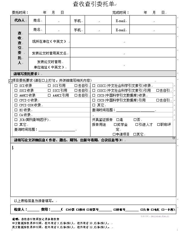 论文引用次数包括自引和他引啊,又可分为正面引用和负面引用。 自引就是自己引用自己的文章,以提高自己文章的引用次数,这种情况一般都不算数的。 他引就是被人引用你的文章。 正面引用当然就是别人引用,并对你的文章做出正面、积极的评价。 负面引用就反之了。 提交他引证明一般你到教育部下属的科技查新站去,叫工作人员帮你统计一下,开张证明,并且加盖查新站的公章即可。 教育部科技查新站名单如下: 教育部科技查新工作站(第一批) 一、综合类: 北京大学(Z01) 复旦大学(Z02) 华中科技大学(Z03) 吉林大学(Z04) 四川大学(Z05) 山东大学(Z06) 武汉大学(Z07) 西安交通大学(Z08) 浙江大学(Z09) 中山大学(Z10) 中南大学(Z11) 上海交通大学(Z14) 二、理工类: 北京科技大学(L01) 重庆大学(L02) 东北大学(L03) 东南大学(L04) 大连理工大学(L05) 华东理工大学(L06) 湖南大学(L07) 江南大学(L08) 兰州大学(L09) 南京大学(L10) 清华大学(L11) 天津大学(L13) 同济大学(L14) 厦门大学(L15) 中国海洋大学(L16) 中国地质大学(武汉)(L17) 三、农学类: 中国农业大学(N01) 教育部科技查新工作站(第二批) 一、理工类: 石油大学(北京)(石油石化学科)(SH01) 北京师范大学(L18) 长安大学(工学)(G01) 西南交通大学(交通运输学科)(J01) 河海大学(工学)(G02) 华南理工大学(L20) 石油大学(华东)(石油石化学科)(SH02) 华北电力大学(工学)(G03) 南开大学(L21) 电子科技大学(电子信息学科)(D01) 中国矿业大学(工学)(G04) 华东师范大学(L19) 二、农学类: 东北林业大学(N02) 三、医学类: 北京中医药大学(中医学与中药学学科)(YZH01) 教育部科技查新工作站(第三批) 一、综合类: 郑州大学(Z12) 二、理工类: 东华大学(工学)(G05) 福州大学(L22) 江苏大学(工学)(G06) 南京航空航天大学(航空航天学科)(G07) 内蒙古大学(L23) 宁波大学(工学)(GN01) 山东科技大学(工学)(G08) 武汉理工大学(工学)(G09) 燕山大学(工学)(G11) 西安电子科技大学(工学)(G10) 三、农学类: 南京农业大学(N03) 西北农林科技大学(N04) 四、医学类: 广州中医药大学(中医学与中药学学科)(YZH02) 教育部科技查新工作站(第四批) 一、综合类: 苏州大学(Z13) 二、理工类: 东北师范大学(L24) 南昌大学(L25) 上海海事大学(工学)(G12) 深圳大学城图书馆(L26) 三、农学类: 福建农林大学(N05) 海南大学(N06) 华中农业大学(N07) 西南大学(N08) 四、医学类: 南方医科大学(Y01) |