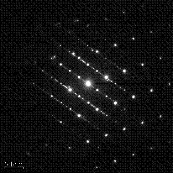 本人小白,求助各位大神,衍射花样如下图,现已知:基体相为面心立方,第二相可能有三种,分别是立方、正交和密排六方。物相种类都知道。 问题是怎么选取每一种相的A、B、C三个斑点,从而量取d值,先量d值对比PDF卡片的话,对比出的晶面指向又不止一种(也可能不是同一种物相的指数),是不是量d值时每一种物相要选取类似于晶胞的周期性多边形呢? 2-16.jpg |