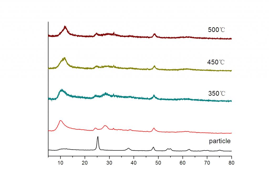 最近用文献中最常提到的锐钛矿TiO2,水热法制备,了钛酸型纳米管,想通过煅烧变成锐钛矿或TiO2(B),但350,450,500分别煅烧2h后XRD显示仍然是钛酸型的呀?这是个什么情况?请各位大侠不吝赐教。。。 xrd.jpg |