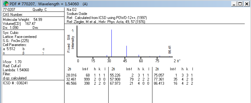 【求助】XRD分析中,pdf卡片里的数据,用什么软件转化成标准的衍射图谱?