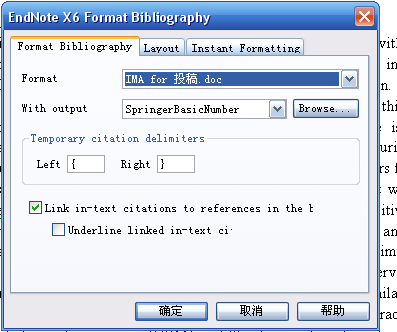 小弟的一片论文准备投稿Springer旗下的期刊,根据instructions,下载了官网提供的Endnote模板(SpringerBasicNumber),将其选入Endnote中进行自动排版,如图: