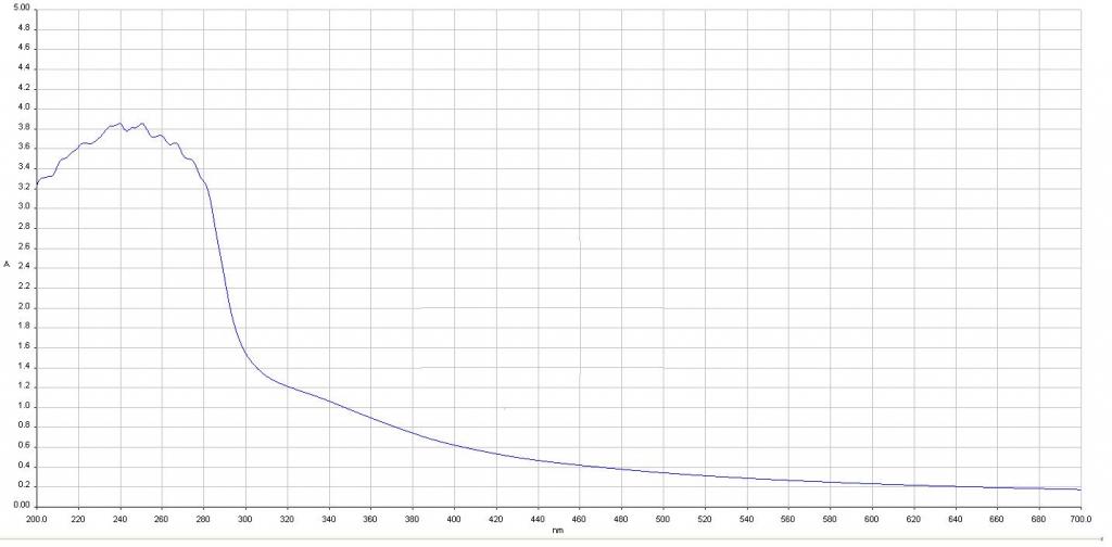 想用紫外光分光度计来测试细菌培养基的吸收特征曲线,以便找到它在哪个波长上有最大的吸收值,但是做出来的图并不理想,类似波峰出现在250nm附近,而且还算不上波峰,(很多文献都使用550或者600nm作为测定细菌生长浓度的测定)。想问问这是为什么?感谢了