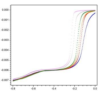 我在做添加剂对于铜沉积的影响的时候,测试了极化曲线。在铂电极上预镀10秒,然后从 0 V 扫到 -0.8 V 扫数是 20 mV/s. 做出来的图发现-0.6 V的时候电流趋于一致,无论在多大的浓度下的极限电流都差不多,这是咋回事啊?