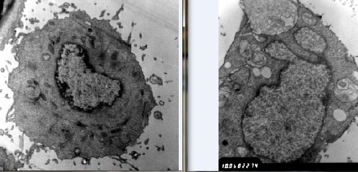 各位请帮忙看下这两个细胞的透射电镜结果有什么不同