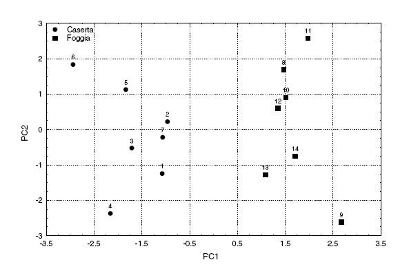 我在很多文献中看到如附件这样的主成分分析散点图,其中横坐标是第一主成分,纵坐标是第二主成分,里面的点代表的并不是测定的指标,而是测定的样品,就是说他一共有14个样品,编号1到14,然后每个样品都做了很多指标的测定,然后对这些指标做了主成分分析,画出了这样的一副图,请问是怎么得到这个图的? 9BWYGJOEJWUK9AJZFVX1KKS.jpg |