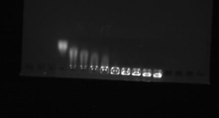 一个带正电的纳米粒,与一个小片段的基因孵育,基因恒定,纳米粒不同比例上电泳。最左边的是空白基因对照。 为什么会拖尾? 为什么条带不在一条线上? 为什么加样槽会有微小的上移? 电泳条件试过60V,温度控制的很好,样品新的。 求解释。 未命名.jpg |