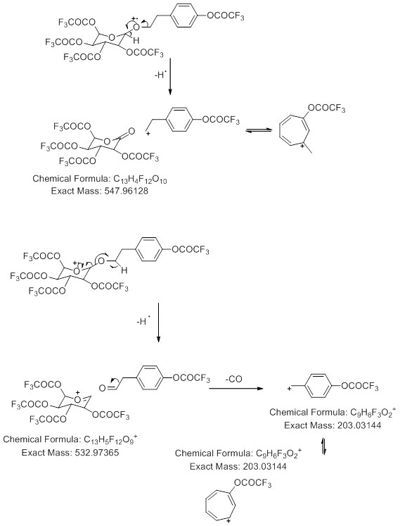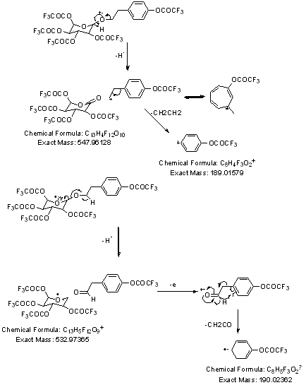 | 第一个为质谱图,第二个为解析步骤图,大家看看对不对,主要是217到190这一步,去掉个乙烯基不清楚对不对,或者有其它更好的解析方法。谢谢。 |