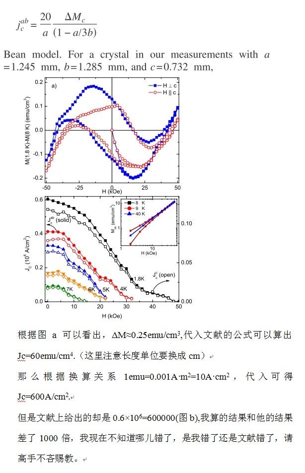 求助有关超导采用Bean-model,通过M-H Loop求临界电流密度的问题!