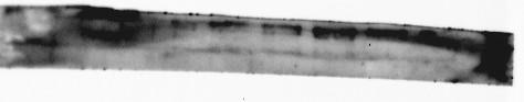 同一蛋白,说明书上给的分子量是50-80KD,western做了2次,发现膜的2头背景深,一抗羊单克隆抗体,二抗是驴抗羊的(1:10000),结果见图,求解。(胶是15%的浓度,一抗二抗均购自Santa Curz)