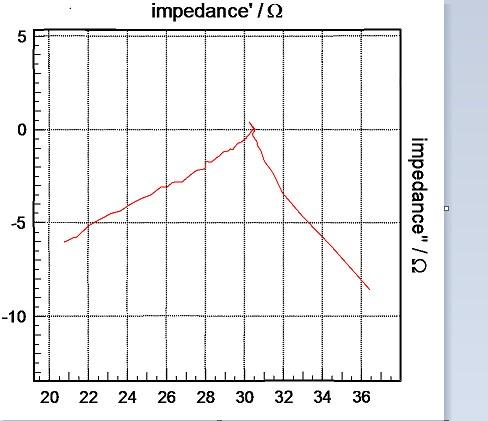 求各位高手指点:我在测交流阻抗时,高频区的半圆弧区域测出条折线是怎么回事?附图了!