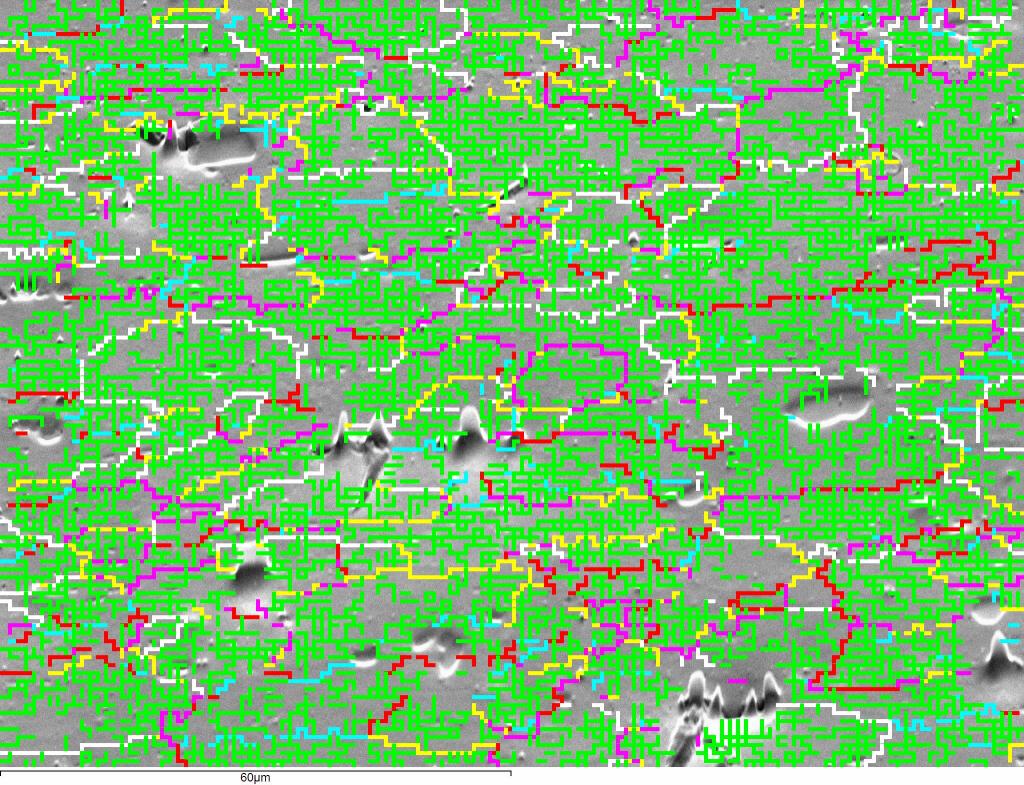 尝试用EBSD 观察加工态的铝合金的的亚晶结构 利用INCA软件直接得到的图谱如下: 为什么低角度的晶界这么乱,并且也看不到完整的低角度晶界。 有没有高手用EBSD观察过亚晶结构呢?对于这种原始的图谱是不是得经过特定软件解析呢? 非常期待您的回答。 rolled1.jpg |