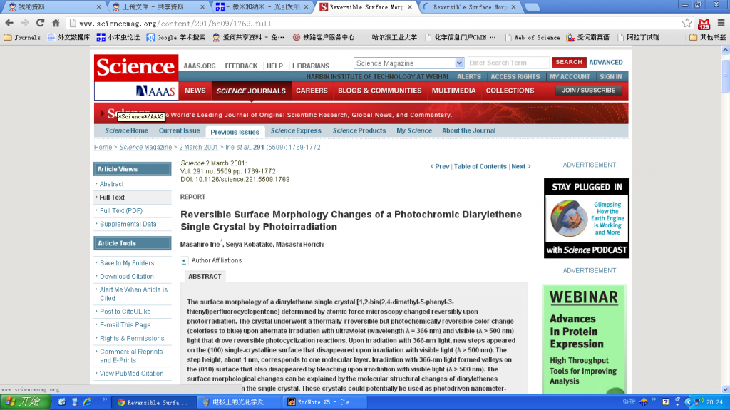 如下图所示为光引发的开关环反应。因为这个分子里面含有杂环,所以可以作为待测SERS待测分子。 在JPCC上的一篇文章就是SERS与上述的反应结合的结果。如图所示。 http://pubs.acs.org/doi/abs/10.1021/jp303693z 每一篇文章的后面都有一个牛瘟在支撑着,下面就是Science的牛瘟。 Science上的文章.PNG 晶体示意图.PNG 表面发生的变化.PNG 表面的变化1.PNG 晶体内部的变化.PNG [ Last edited by 11900490 on 2013-4-8 at 20:35 ] |