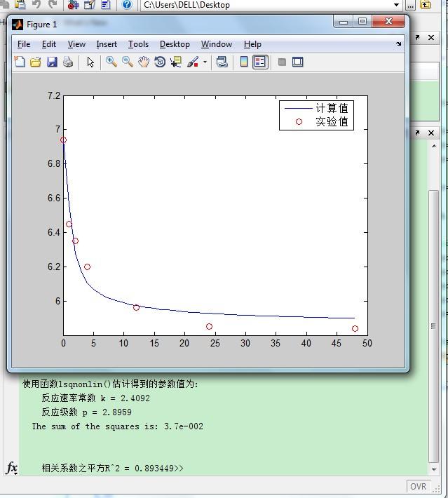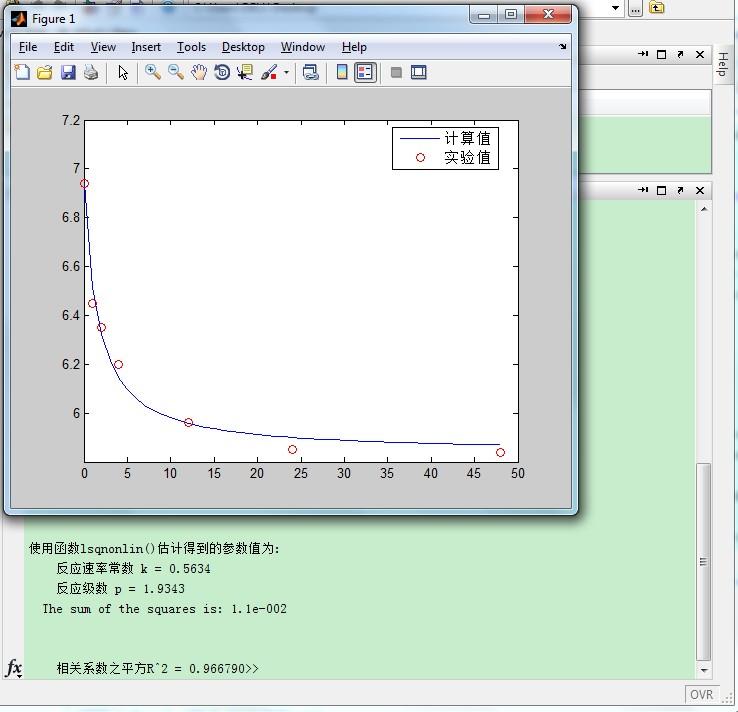 参考如下,数据都给出了,图就自己画吧。 一、T=40℃ 1: 均方差(RMSE): 0.130881358642542 残差平方和(SSE): 0.102779580240706 相关系数(R): 0.92948687892579 相关系数之平方(R^2): 0.863945858095207 决定系数(DC): 0.7014680343495 参数 最佳估算 -------------------- ------------- k 0.628935530729103 ====== 输出结果 ===== 文件:数据文件-1 No t 目标c 计算c 1 1 6.45 6.67240696522287 2 2 6.35 6.35903318327559 3 4 6.2 6.00268174237771 4 12 5.96 5.84085046711091 5 24 5.85 5.83990011565843 6 48 5.84 5.83989990769446 2: 均方差(RMSE): 0.073235049689877 残差平方和(SSE): 0.0321802350184726 相关系数(R): 0.956218047243834 相关系数之平方(R^2): 0.914352953874811 决定系数(DC): 0.906529791300365 F统计(F-Statistic): 42.7943839609255 参数 最佳估算 -------------------- ------------- k 2.47630212562308 p 3.05830615666334 ====== 输出结果 ===== 文件:数据文件-1 No t 目标c 计算c 1 1 6.45 6.51661978608566 2 2 6.35 6.26799040656772 3 4 6.2 6.11497329290095 4 12 5.96 5.98587470883071 5 24 5.85 5.94053693553416 6 48 5.84 5.91014618686962 3: 均方差(RMSE): 0.117847891997096 残差平方和(SSE): 0.0833287538889551 相关系数(R): 0.891627874287617 相关系数之平方(R^2): 0.795000266206655 决定系数(DC): 0.757964601184233 F统计(F-Statistic): 16.5265081867001 参数 最佳估算 -------------------- ------------- k 43.262501795392 p 5.42410742840664 ====== 输出结果 ===== 文件:数据文件-1 No t 目标c 计算c 1 1 6.45 6.46922761356955 2 2 6.35 6.17723044063604 3 4 6.2 6.09623043213895 4 12 5.96 6.02554228103785 5 24 5.85 5.99498462819073 6 48 5.84 5.97048094072792 4: 均方差(RMSE): 0.0436702194593802 残差平方和(SSE): 0.0114425284057826 相关系数(R): 0.984160830263229 相关系数之平方(R^2): 0.968572539824408 决定系数(DC): 0.966764210468754 F统计(F-Statistic): 120.352188301092 参数 最佳估算 -------------------- ------------- k 0.573995637444661 n 1.94946132742517 ====== 输出结果 ===== 文件:数据文件-1 No t 目标c 计算c 1 1 6.45 6.51195488347171 2 2 6.35 6.3209349445854 3 4 6.2 6.14431647302729 4 12 5.96 5.96046661216654 5 24 5.85 5.90200189738257 6 48 5.84 5.87089131170918 二、T=30℃ 1: 均方差(RMSE): 0.0914463946772214 残差平方和(SSE): 0.0418122154973107 相关系数(R): 0.883109813748625 相关系数之平方(R^2): 0.779882943139131 决定系数(DC): 0.4658633687109 参数 最佳估算 -------------------- ------------- k 0.641267988059914 ====== 输出结果 ===== 文件:数据文件-1 No t 目标c 计算c 1 2 6.39 6.49219226507947 2 4 6.3 6.19869918779613 3 8 6.2 6.06321762735138 4 12 6.1 6.05103394936056 5 48 6.05 6.04989841523599 2: 均方差(RMSE): 0.0351811683825268 残差平方和(SSE): 0.00618857304379851 相关系数(R): 0.962869508218401 相关系数之平方(R^2): 0.927117689856746 决定系数(DC): 0.920943113901399 F统计(F-Statistic): 37.9473585167311 参数 最佳估算 -------------------- ------------- k 3.32679634365841 p 2.63925400668251 ====== 输出结果 ===== 文件:数据文件-1 No t 目标c 计算c 1 2 6.39 6.40986808223449 2 4 6.3 6.25621398400351 3 8 6.2 6.17287442830727 4 12 6.1 6.14230639813171 5 48 6.05 6.08675580488495 3: 均方差(RMSE): 0.0515656810790967 残差平方和(SSE): 0.0132950973257555 相关系数(R): 0.922657828348316 相关系数之平方(R^2): 0.851297468212431 决定系数(DC): 0.830159717351105 F统计(F-Statistic): 17.6636540708177 参数 最佳估算 -------------------- ------------- k 64.9563925462157 p 4.25370138353015 ====== 输出结果 ===== 文件:数据文件-1 No t 目标c 计算c 1 2 6.39 6.39808487170478 2 4 6.3 6.22797471132206 3 8 6.2 6.17595857853423 4 12 6.1 6.15674620102306 5 48 6.05 6.1151457495888 4: 均方差(RMSE): 0.0265801180675414 残差平方和(SSE): 0.0035325133824222 相关系数(R): 0.97800428671758 相关系数之平方(R^2): 0.956492384837962 决定系数(DC): 0.954873359958837 F统计(F-Statistic): 66.4795782992825 参数 最佳估算 -------------------- ------------- k 0.776932309351846 n 1.9131853150688 ====== 输出结果 ===== 文件:数据文件-1 No t 目标c 计算c 1 2 6.39 6.4115958440908 2 4 6.3 6.27206514956104 3 8 6.2 6.17269745617601 4 12 6.1 6.13366595098915 5 48 6.05 6.07017304826039 三、T=50℃ 1: 均方差(RMSE): 0.102386761568694 残差平方和(SSE): 0.0628982936671474 相关系数(R): 0.953791576986738 相关系数之平方(R^2): 0.909718372330849 决定系数(DC): 0.797025890387304 参数 最佳估算 -------------------- ------------- k 0.638023878501752 ====== 输出结果 ===== 文件:数据文件-1 No t 目标c 计算c 1 1 6.39 6.55194410804666 2 2 6.25 6.27038170513028 3 4 6.1 5.94427704390138 4 12 5.9 5.79088832216661 5 22 5.8 5.78990156770321 6 48 5.79 5.78989999230618 2: 均方差(RMSE): 0.0563848249069551 残差平方和(SSE): 0.0190754908787279 相关系数(R): 0.971478758552759 相关系数之平方(R^2): 0.94377097831921 决定系数(DC): 0.938442991839742 F统计(F-Statistic): 64.9804160329946 参数 最佳估算 -------------------- ------------- k 2.84582430283638 p 2.88851741239037 ====== 输出结果 ===== 文件:数据文件-1 No t 目标c 计算c 1 1 6.39 6.44126381762911 2 2 6.25 6.19137175504639 3 4 6.1 6.03706169739488 4 12 5.9 5.91318932583245 5 22 5.8 5.87622289723122 6 48 5.79 5.84536354812896 3: 均方差(RMSE): 0.102756850034007 残差平方和(SSE): 0.0633538213734688 相关系数(R): 0.907991485091322 相关系数之平方(R^2): 0.824448536998344 决定系数(DC): 0.795555892948522 F统计(F-Statistic): 19.5652496796732 参数 最佳估算 -------------------- ------------- k 69.9747703996217 p 5.30841340081294 ====== 输出结果 ===== 文件:数据文件-1 No t 目标c 计算c 1 1 6.39 6.40396118562392 2 2 6.25 6.09561006019072 3 4 6.1 6.01921115732584 4 12 5.9 5.95419650414531 5 22 5.8 5.92956900411185 6 48 5.79 5.90432597327988 4: 均方差(RMSE): 0.0266371462614936 残差平方和(SSE): 0.0042572253657372 相关系数(R):