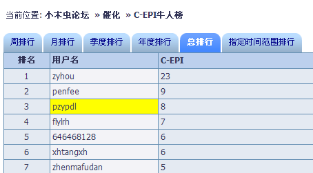 版主您好!因为这段时间较少,也没有很好地参与版块的建设,因此想取消专家顾问,还请版主理解!O(∩_∩)O~ 以下是填写的模板相关信息。 专家顾问开始时间:2016-3-16 催化版应助指数:143(排名4)(2016-3-16至2017-03-08) 链接:https://muchong.com/bbs/helpnum.php?formhash=c58148a0&fid=190&view=other&sel_starttime=2016-3-16&sel_endtime=2017-3-8&viewsubmit=%CC%E1%BD%BB 催化版获得的EPI:3(排名:3) 链接:https://muchong.com/bbs/epi.php?formhash=c58148a0&fid=190&view=other&sel_starttime=2016-3-16&sel_endtime=2017-3-8&viewsubmit=%CC%E1%BD%BB 在该版块获得的主题帖:10 链接:https://muchong.com/bbs/space.php?fid=190&starttime=2016-3-16&endtime=2017-3-8&ssubmit=%C9%B8%D1%A1%D6%F7%CC%E2&uid=1206043&view=thread&archive=&old= |