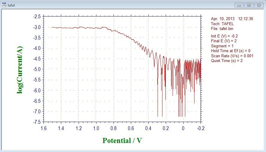 有关电化学工作站CHI660D测试塔菲尔曲线的问题