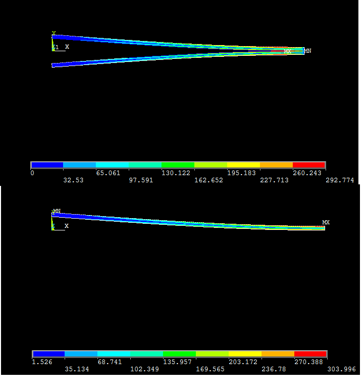 下图是我用ansys仿真模拟的两个例子,其中第一个例子是help文件里面自带的胶接例子,它有个预知裂纹。后面就是纯粹一个单元,单纯的固定节点和施加力,发现两个的变形量竟然是如此相像,是我模拟的这块有问题,还是怎么回事,希望大神回答。 无标题.png |