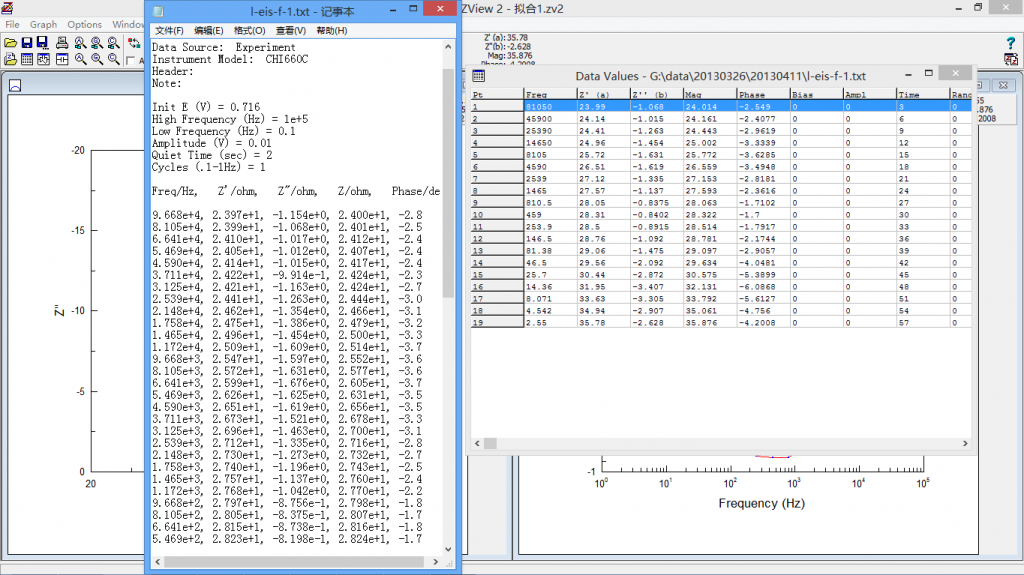 | 做的EIS的频率范围是100kHZ到0.1HZ,导入ZVIEW后1HZ以下的数据不见了,这是怎么回事啊? |