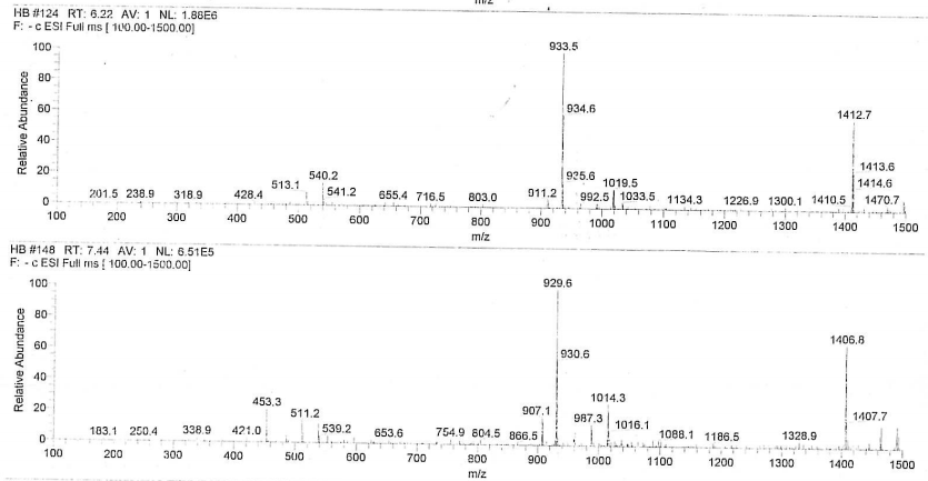 我用一个混合物样去做了一下液质,结果发现只出现了下面几种物质的质谱,不明白这是什么原因,不是应该对应的峰会出现对应的质谱图吗?还有这几个质谱图我也不会解,希望有能力的人能帮忙解谱一下 1.PNG 2.PNG 3.PNG |