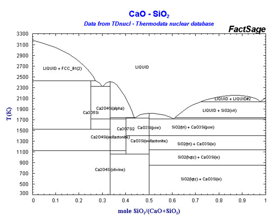 CaO-SiO2体系的相图资料很全的,可以找到相图参考。