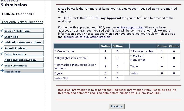 由于文章投journal of luminescence,现在修改稿投稿,遇到图片中情况,请大家指点一下。怎么才能下一步next,而不是previous按钮。