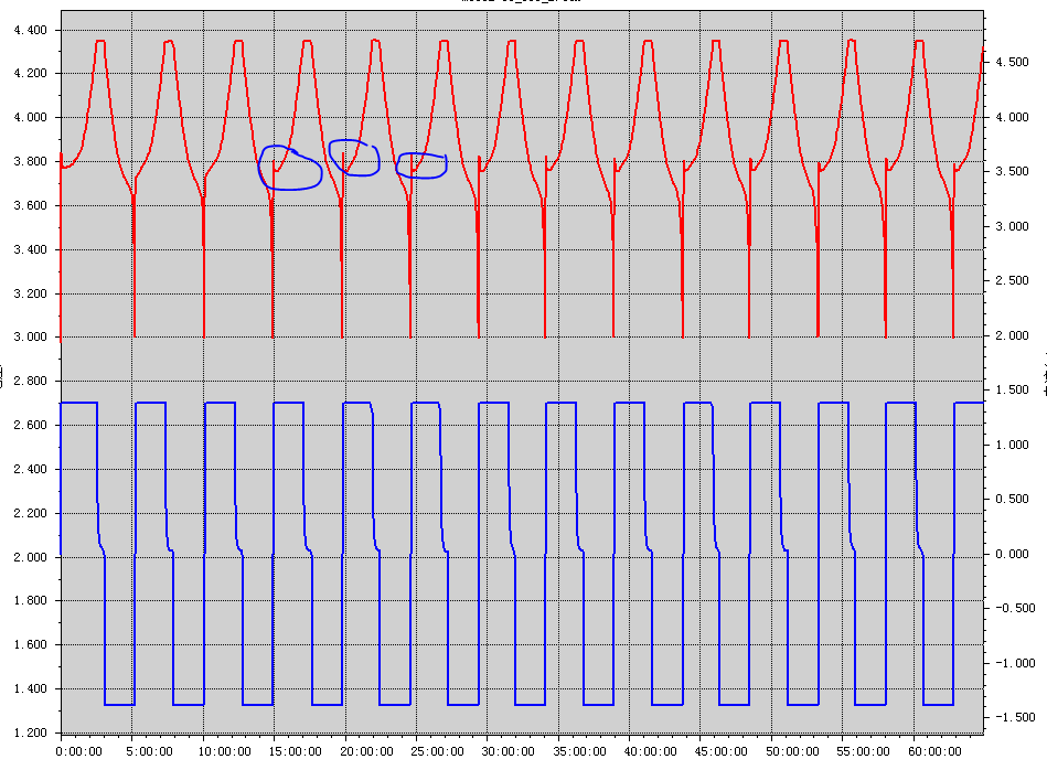 看你的充放电曲线,在放完电后貌似没有搁置时间吧?如果是的话,可能是放完电后电极极化的原因吧。试试在充放电之间增加几分钟的搁置。